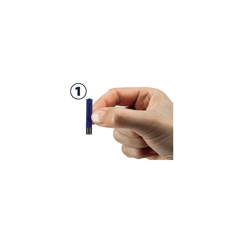 Es wird mit einem Nylonbeutel, einem Lanzettengerät, 10 Lanzetten, 6 Streifen, Steuerlösung, 2 AA Batterien von 1,5, einem USB-Stick, einem englischen Handbuch, einem CD-Handbuch (GB, FR, IT, DE, ES, DK, FI, NO, RU, SE, TR, CN) geliefert.