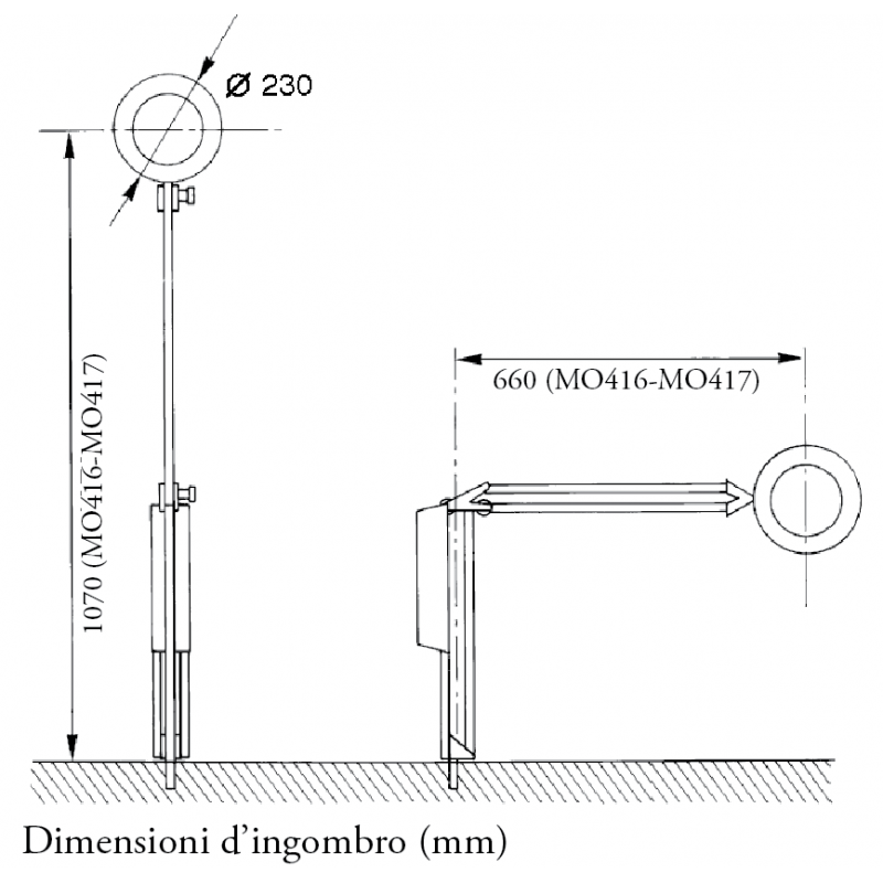 MORETTI LÁMPARA FLUORESCENTE CONVEXA CIRCULAR 3 + 7,5 DT. BRAZO LARGO