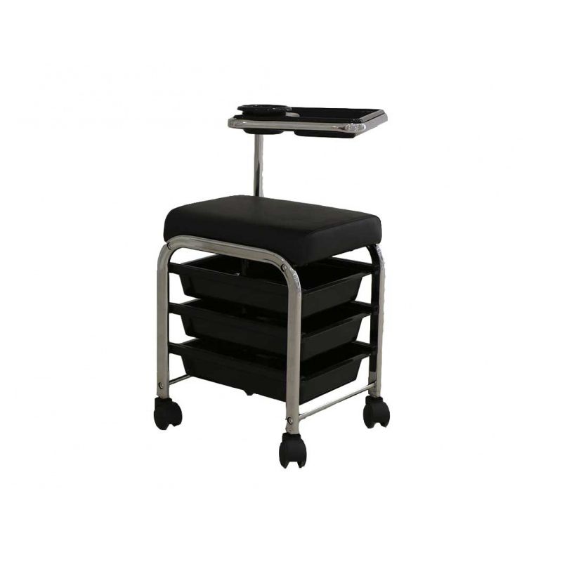 Manikürenhocker mit 3 Lagerschubladen und seitliche Stütze rotierende Rückenlehne.