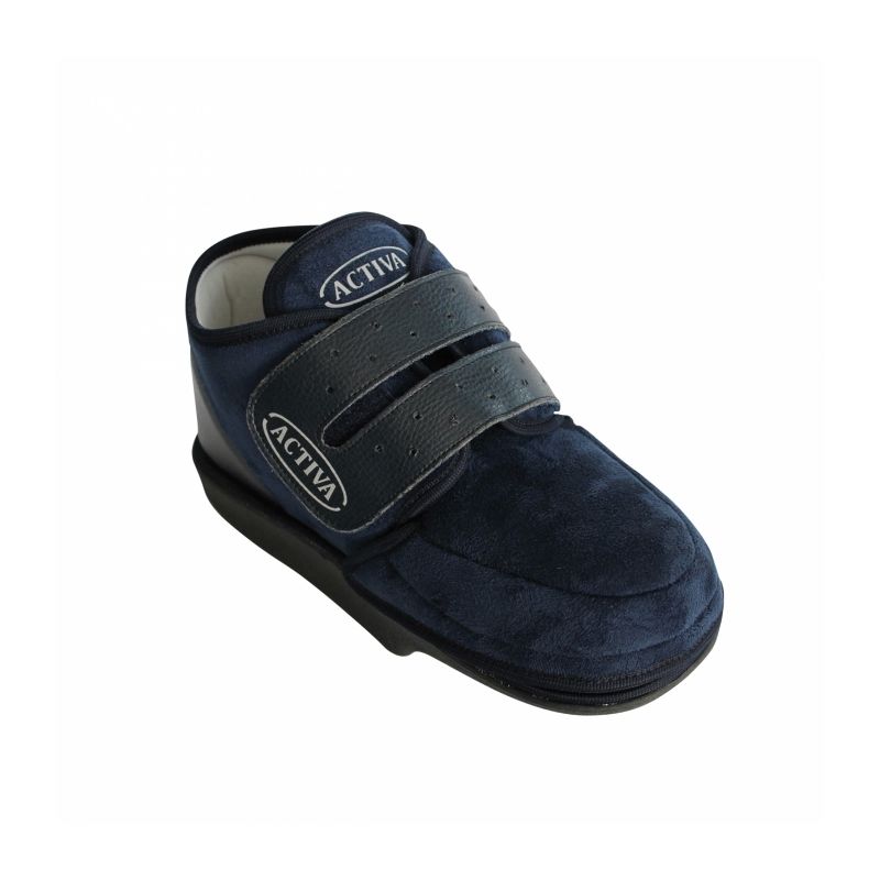 Ambidextrous post-operative shoe in blue, unisex with upper in breathable fabric.