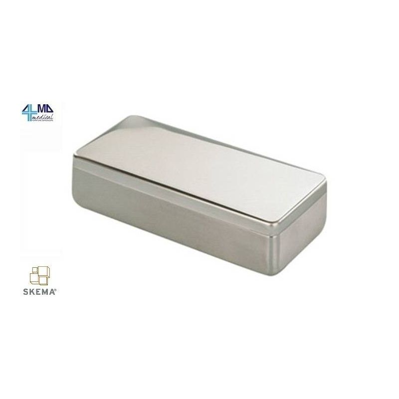 Caja con tapa para la esterilización de instrumentos Para conservar y esterilizar los instrumentos en las estufas secas. Hecho en acero inoxidable 18/10. TAMAÑO: TX181 180 mm 80 mm 40 mm TX182 200 mm 100 mm 60 mm TX183 220 mm 120 mm 60 mm TX184 250 mm 120 mm 60 mm TX185 300 mm 125 mm 60 mm TX187 400 mm 160 mm 75 mm TX188 500 mm 200 mm 60 mm
