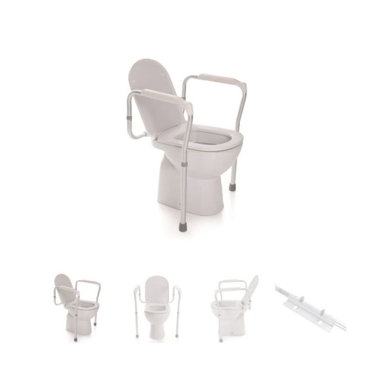 Structure in anodized aluminium Ø 2.5 cm. Useful as an aid to sitting and getting up from the toilet. Adaptable to any type of toilet. Height adjustable legs, non-slip rubber tips.