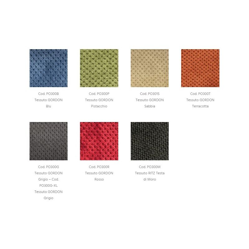• Padding in non-deformable polyurethane foam with differentiated density (backrest 18-22 Kg / m3, footboard 18 Kg / m3, seat 35 Kg / m3, armrests 40 Kg / m3);