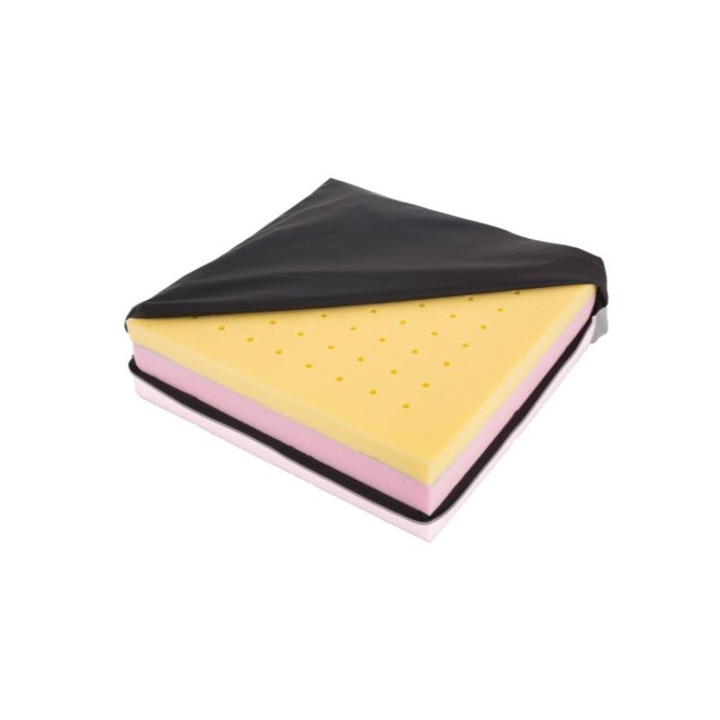 Made of viscoelastic foam and supporting base in polyurethane foam with removable cover with zip.