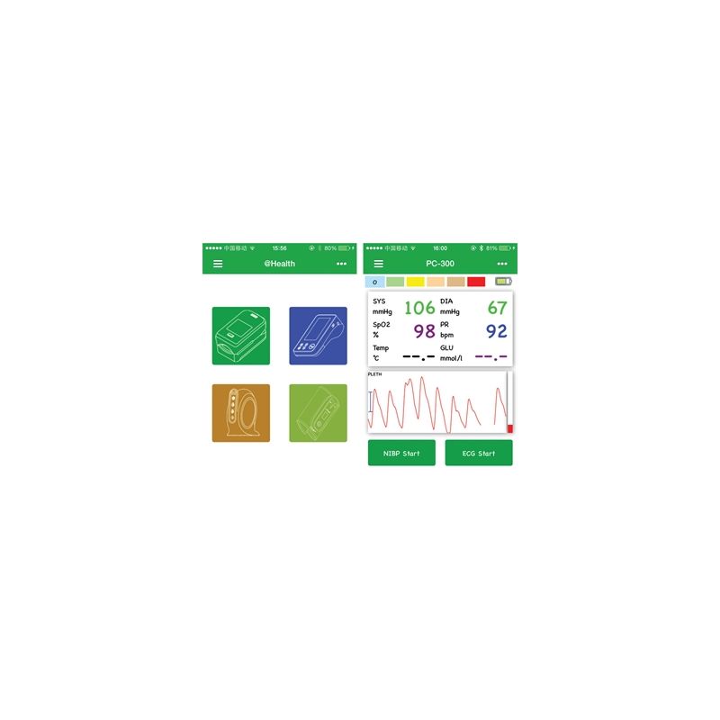 Widely used in hospitals, clinics and family daily measurement. Equipped with Bluetooth and USB interface, allows to transfer data to PC, tablets and smartphone (Android and iOS). - up to 6000 groups NIBP data storage, up to 100 different patients (each user can store 999 measurement records) - quick ear probe TEMP measurement result in 5 seconds - data transfer to PC/Smartphone by USB or Bluetooth - optional NIBP pediatric cuff and SpO2 pediatric probe - optional ECG and Glucometer - built-in rechargeable lithium battery - communication protocols available on request Size: 165 x 96 x 68 mm. |