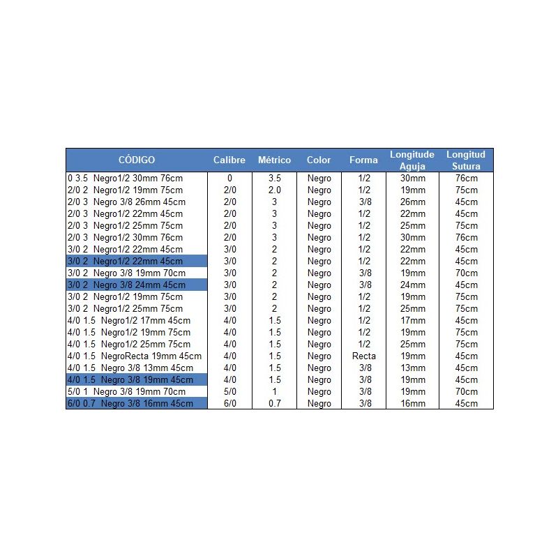 TRULENE SUTURA NON ABSORBIBLE TRULENE - VARIOUS CALIBRES (12 YOU)