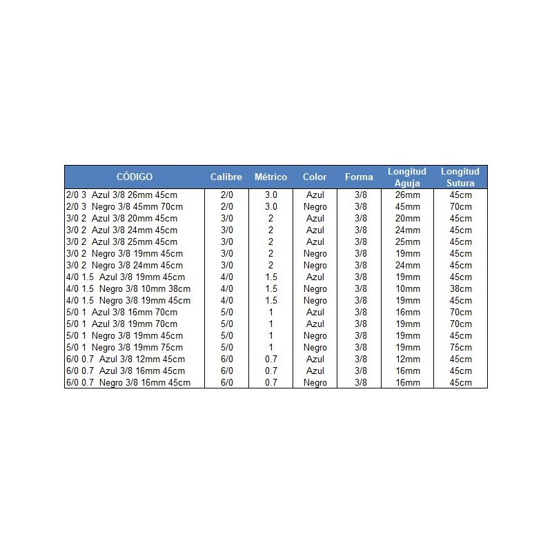 TRULENE SUTURA NON ABSORBIBLE TRULENE - VARIOUS CALIBRES (12 YOU)