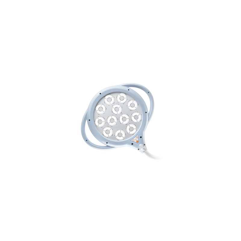 - indirect light with 12 elliptic reflectors. They reflect the light rays emitted by the LEDs. Does not dazzle and does not strain eyes. PENTALED is a perfect combination of technological developments, innovation, ergonomy and compact design, ultra-light and handy structure. Five versions available (trolley, ceiling, ceiling double, trolley with battery group and wall) and technical performances make PENTALED suitable for precision operations, diagnostic use, surgical rooms and small surgeries. Battery group is available on request also for wall and ceiling models. • Cold LED light Bright and cold light reproduces colours faithfully, assuring excellent definition of details. • Ergonomic PENTALED can be easily positioned by rotation on 4 axes: - the dome has a full-circle 360° rotation - the arm moves vertically thanks to a spring balancing system - the reflector can be rotated on the vertical and horizontal axis. Movements are possible through the sterilizable handle. • 50,000 hours life time The low power supply current and the heat dispersion through aluminium dome allow the LED a 50,000 hours lifetime. • Light intensity adjustment Light intensity adjustable through digital control The ultra-flat lighting body is equipped with ultra-resistant polycarbonate screen which guarantees protection against accidental collisions. |
