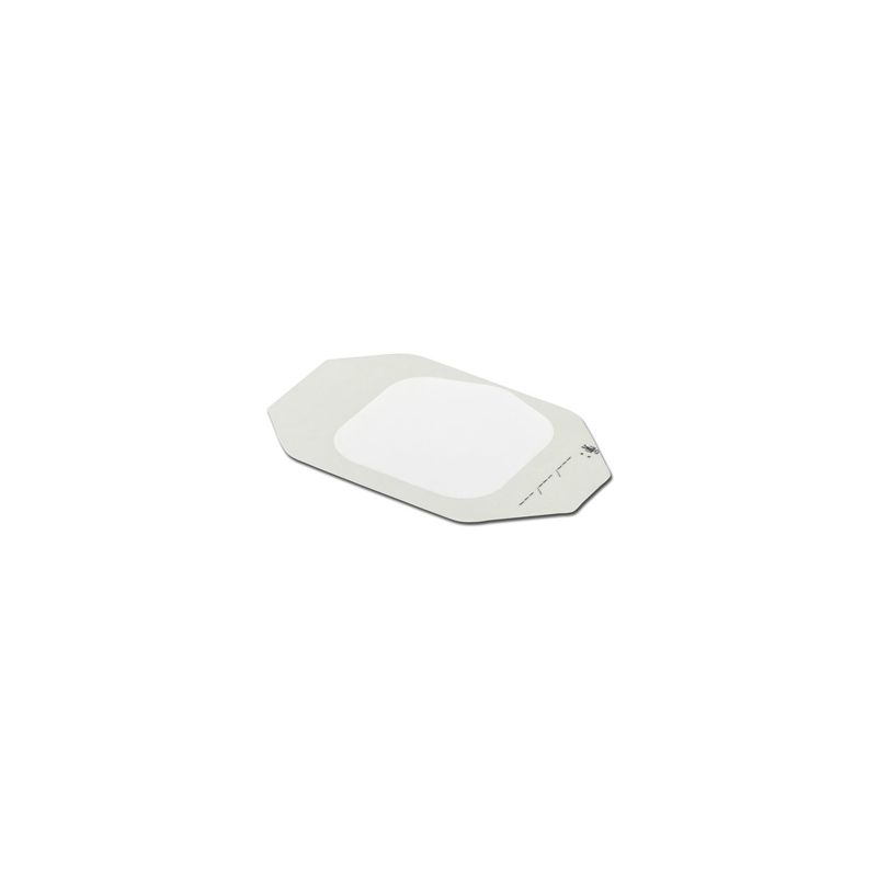 Apósitos originales 3M TEGADERM™: apósito estéril y transparente con etiqueta. Tegaderm es un apósito adhesivo hipoalergénico, transparente, de alta permeabilidad y fabricado en película de poliuretano que no contiene látex. El apósito mantiene una humedad adecuada en contacto con la herida porque permite un intercambio de oxígeno y vapor de agua óptimo. Además, Tegaderm es impermeable a líquidos, bacterias y virus, por lo que evita la contaminación externa del sitio de inserción.