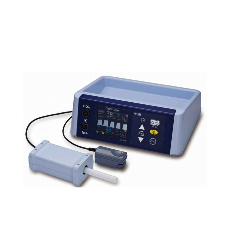 MC-600 es un oxímetro de pulso / capnógrafo clínico compuesto por la unidad principal, la sonda del sensor de EtCO2 y la sonda de SpO2.