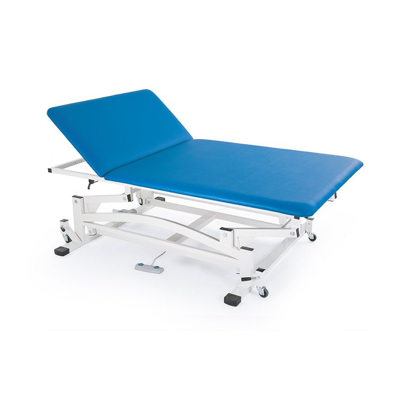 Cama de dos secciones regulable eléctricamente en altura, para terapia del método Bobath, masaje y reconocimiento médico.