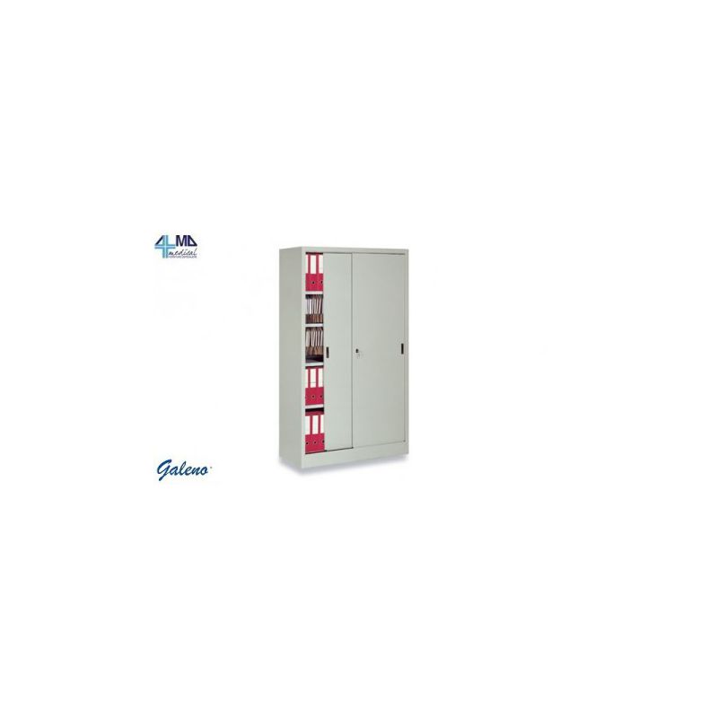 Armario de acero pintado con 2 puertas correderas y 4 estantes.