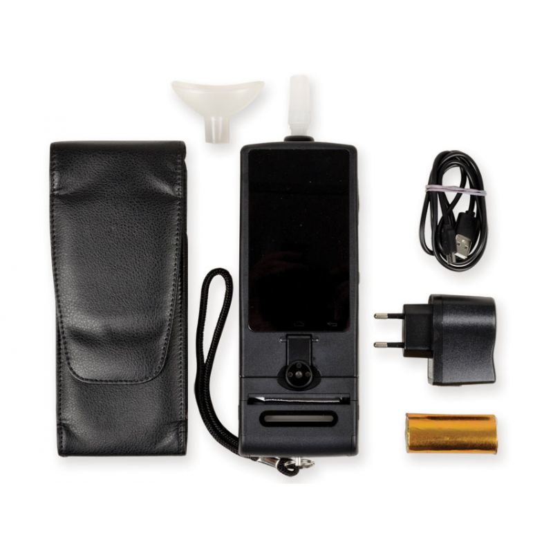 Alcoholímetro profesional con sensor celular, con impresora y pantalla táctil.
