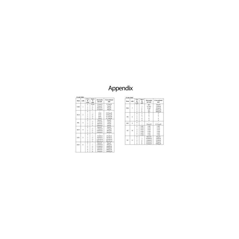 Parámetros: GLU, BIL, SG, KET, BLD,PRO, URO, NIT, LEU, VC e PH