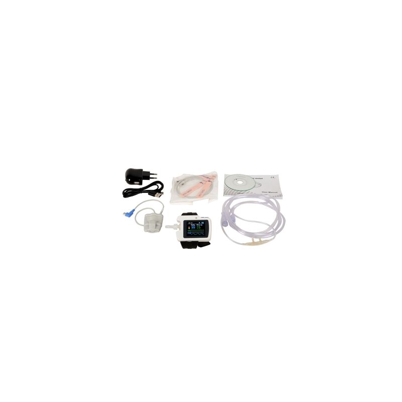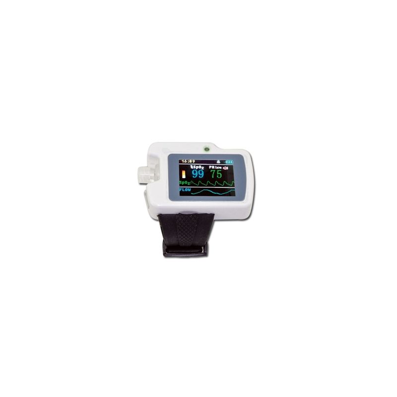 Instrumento para la detección del apnea nocturna. El dispositivo puede utilizarse en pacientes con: síndrome de apnea-hipopnea durante el sueño (SHRP), enfermedad pulmonar obstructiva crónica (EPOC) , asma y enfermedades cardiovasculares. Para uso hospitalario, así como domiciliario.