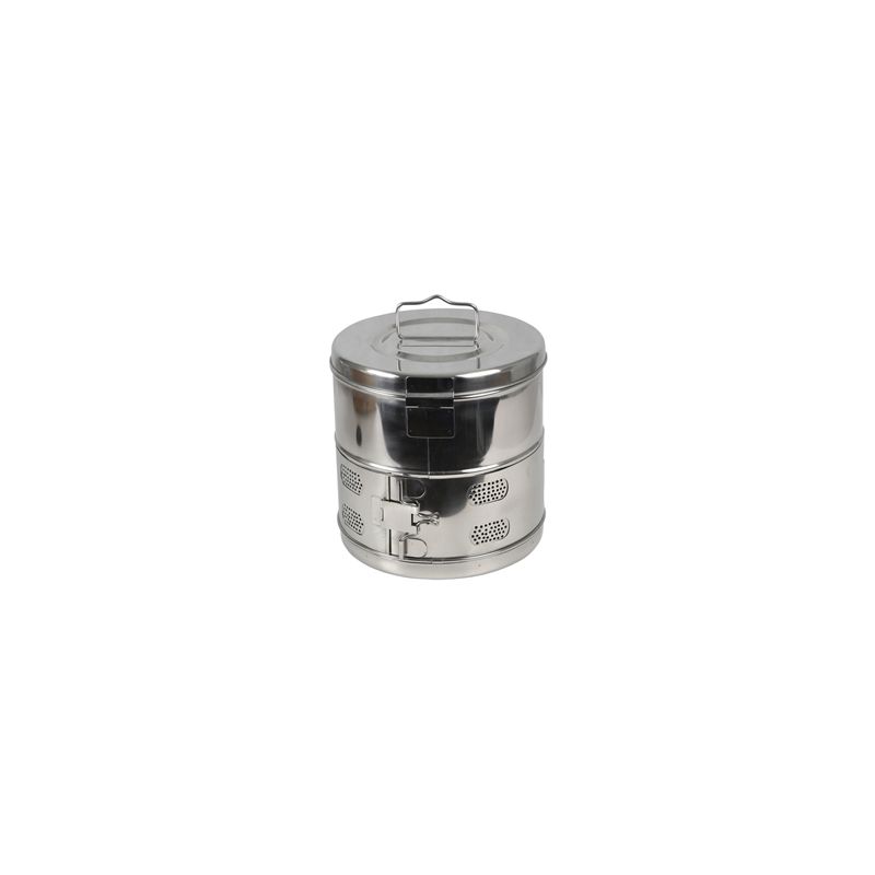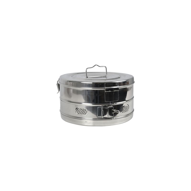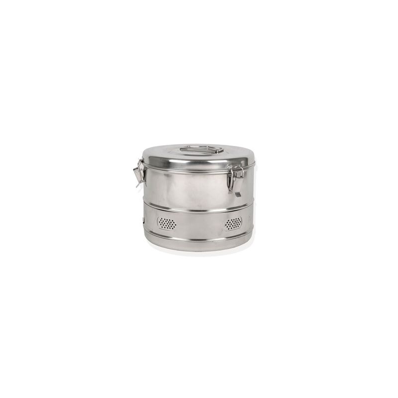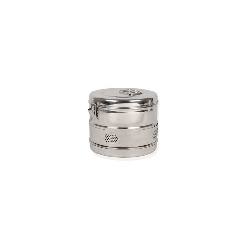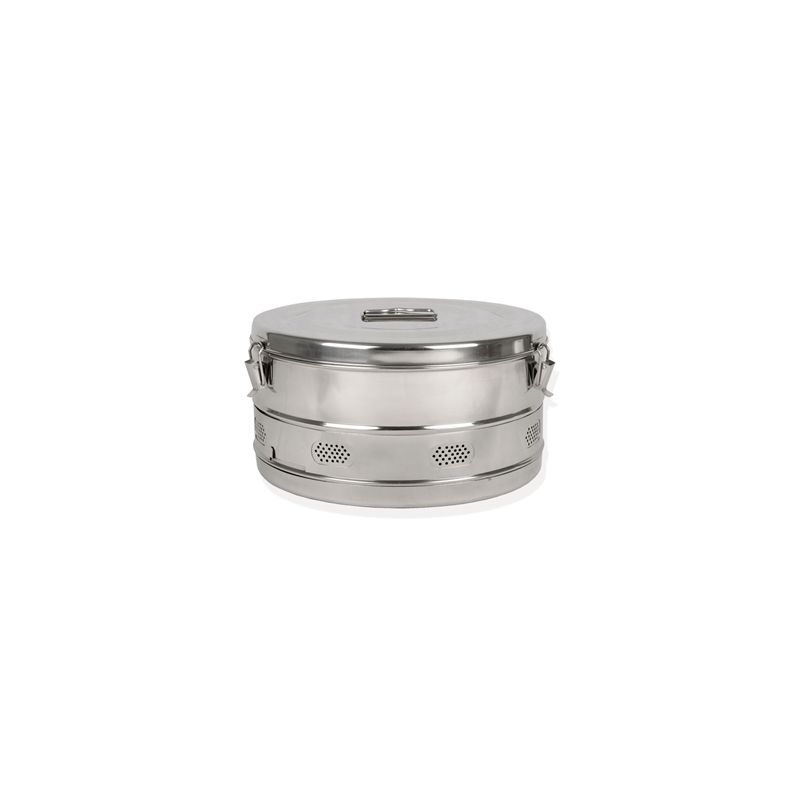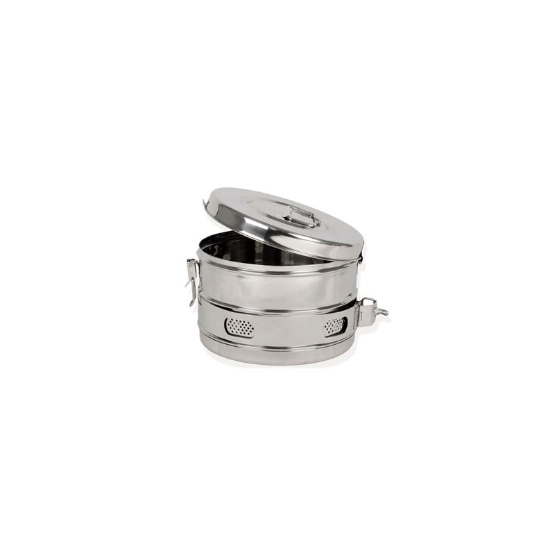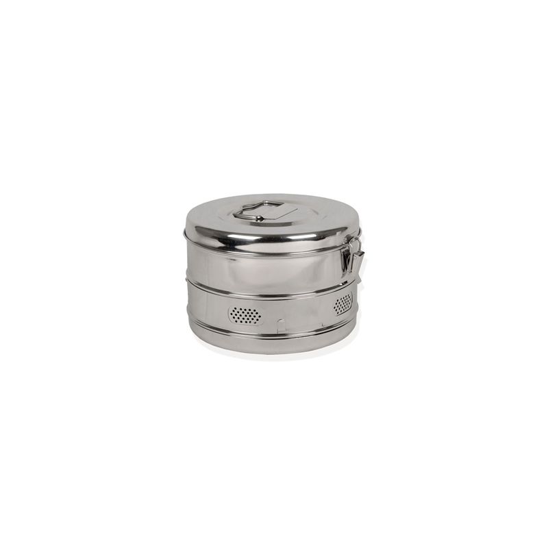 Tambor de acero inoxidable para esterilización en autoclave o esterilizador en seco. Incorpora banda interior deslizante y asa.