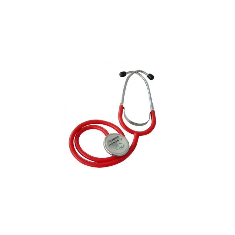 Fonendoscopio para adultos con cabeza plana de aluminio, ideal para introducirlo bajo el manguito del esfigmomanómetro de forma cómoda y sencilla.