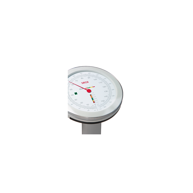 La báscula mecánica Seca 756 es una de las primeras básculas de columna que indica el estado nutricional del paciente además de incorporar la función IMC.
