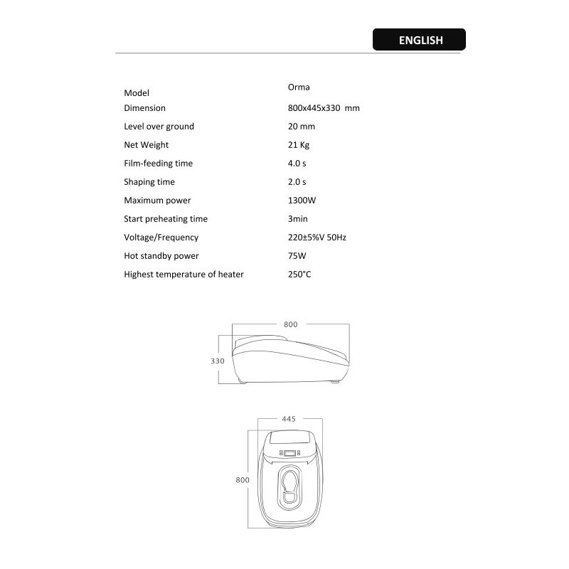 ORMA "fabrica" de forma automática el “calcetín protector”. En efecto, si coloca el zapato en el compartimento donde se encuentra la película termoplástica, se activa el sistema de calentamiento y genera el cubre-zapato en tiempo real según la forma del calzado.