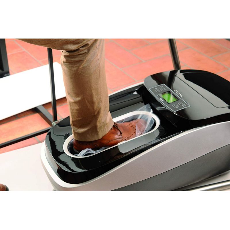 No es necesario el uso de cubre-zapatos que se introducen en el dispositivo, en su lugar se emplea un rollo de película termorretráctil.
