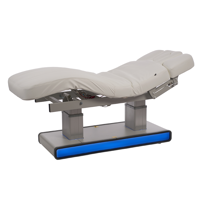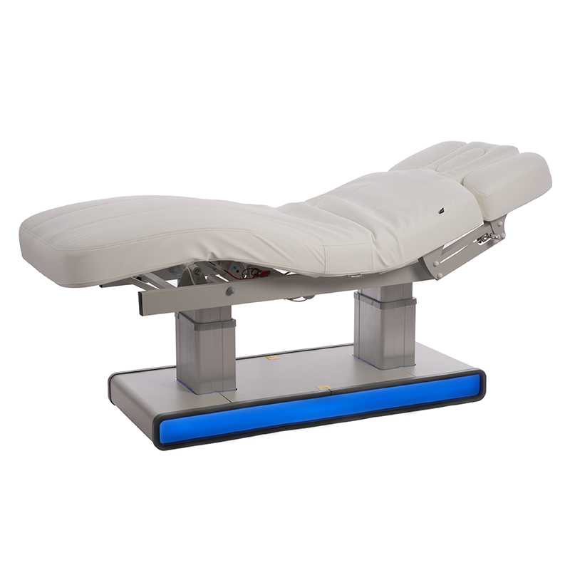 Camilla de SPA de 4 motores que regulan la altura y la inclinación del respaldo, del reposapiés y de toda la camilla.