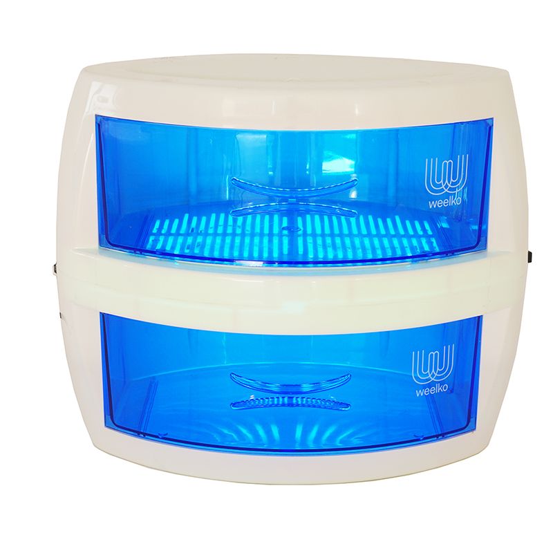 Esterilizador de luz ultravioleta con doble cajón de uso simultáneo para pequeños instrumentos.