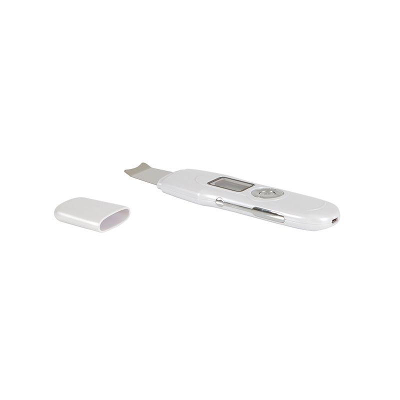 Espátula facial portátil que combina 3 funciones: exfoliante, corriente galvánica para la penetración de producto y corriente EMS que reafirma y mejora la elasticidad de la piel.