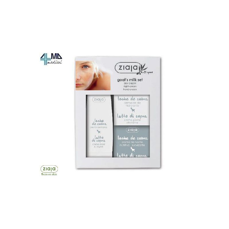 Muy bonito set de cuidados faciales y de manos a la leche de cabra incluyendo crema de día, crema de noche y crema de manos y uñas.