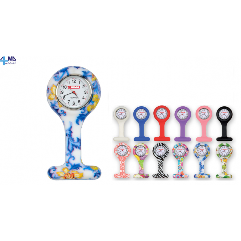 Montre ronde en silicone pour infirmières, avec différentes couleurs disponibles.