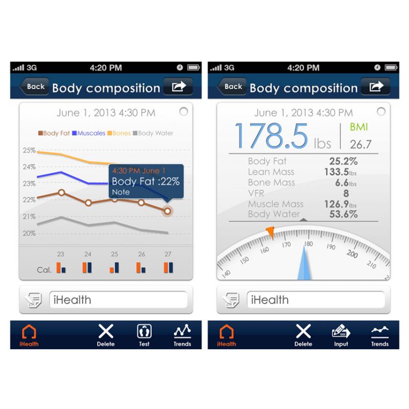 LaÉchelle d ' inhalation HS5, permet des mesures, contrôle et partage les paramètres vitaux de votre composition corporelle du confort de votre proprio. Tout cela à travers la connexion inhalée avec votre appareil iOS.