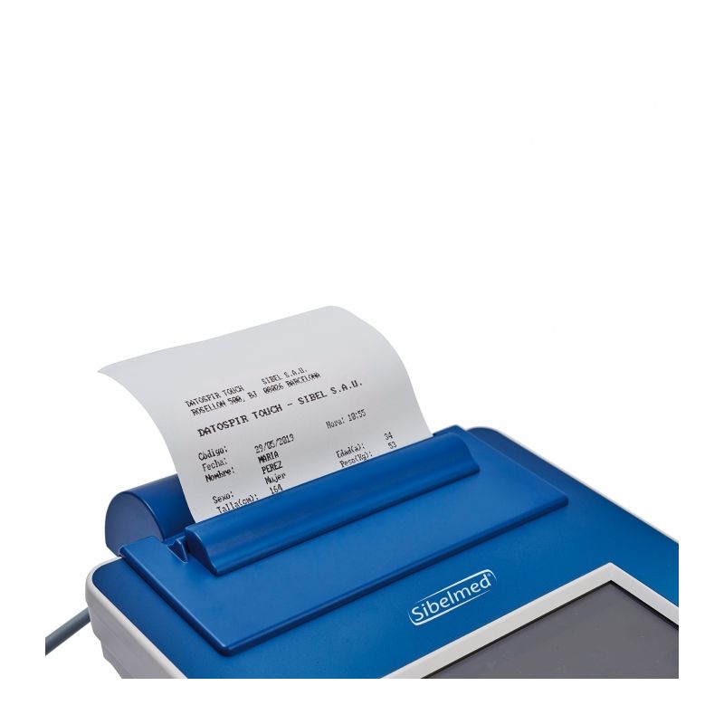 Il est équipé d'un grand écran tactile couleur à haute résolution et d'une imprimante thermique interne permettant de documenter les tests spirométriques même sans l'aide d'un logiciel.