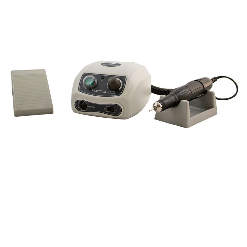 Micromoteur d'une grande efficacité et légèreté pour la podologie. Vitesse réglable jusqu'à 35 000 tr/min, avec torsion droite/gauche et couple 2.8 N/cm. Comprend pièce à main et pédale pour la fonction ON/OFF.