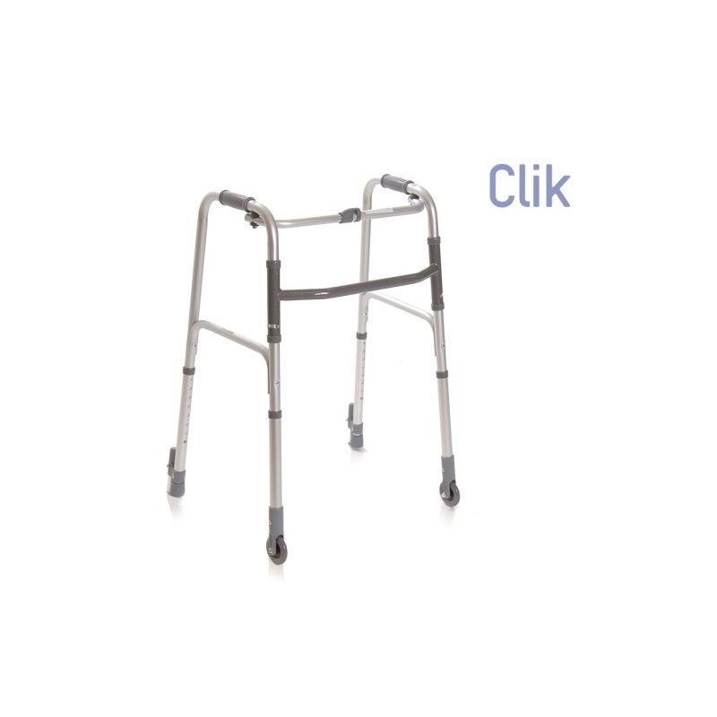 walker pliant, construit en aluminium peint avec 2 roues fixes et 2 broches avec système de verrouillage automatique.