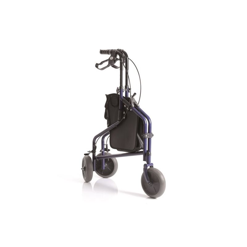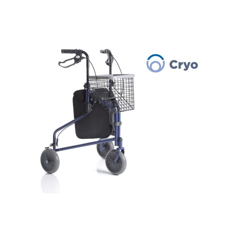 Promeneur en acier pliant peint avec 3 roues, panier et sac.