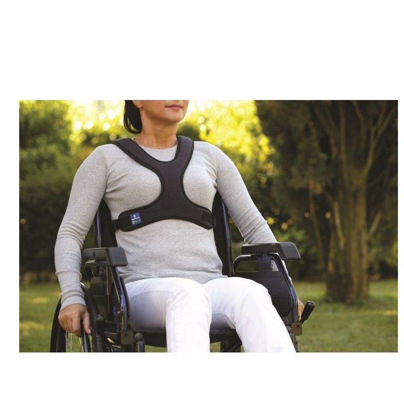 Indiqué pour éviter de glisser vers l'avant et pour faciliter le confinement de torse pour les patients assis dans une chaise confortable ou fauteuil roulant.