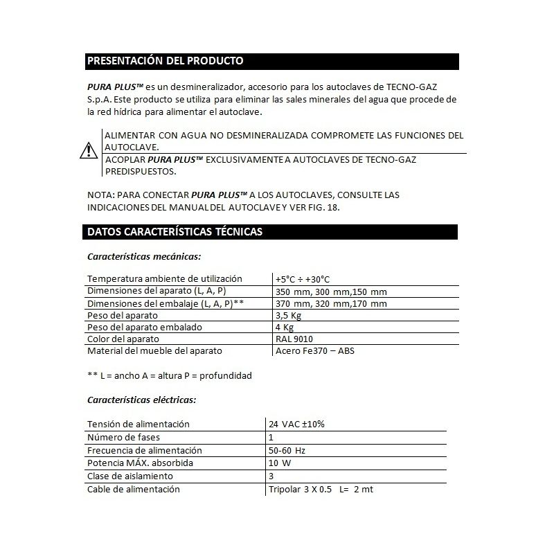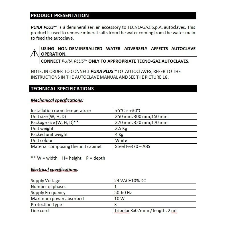 TECNO-GAZ SYSTÈME DE PURIFICATION DE L ' EAU - PURA
