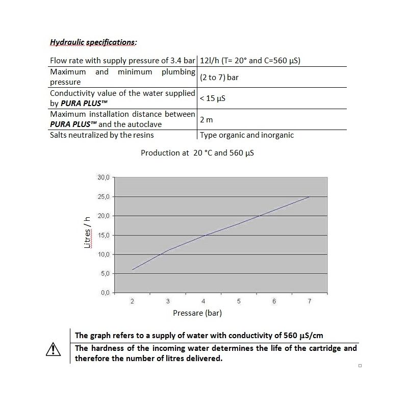 Le Pura Plus système de traitement d'eau d'osmose a une taille très compacte et est connecté directement à l'autoclave, qui garantit une alimentation continue d'eau pure.
