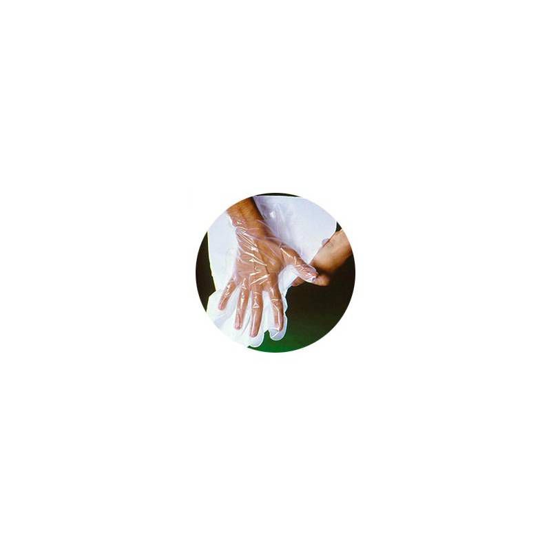 Polyethyleen handschoenen op papier, wegwerpbaar.