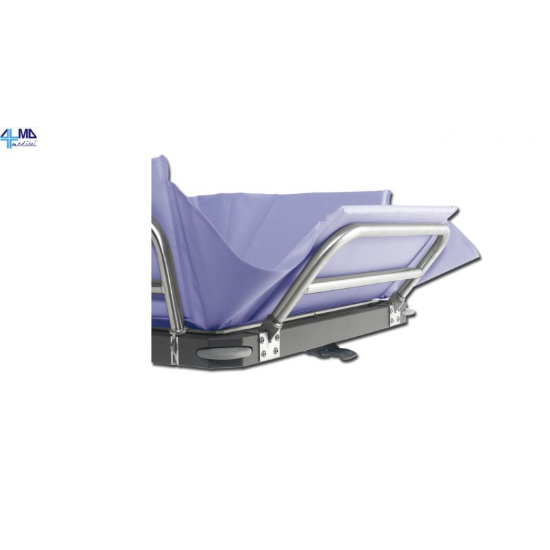 Beveiligingsbescherming is uitgerust met een opsluitingsapparaat en wordt met een hand gevouwen tijdens de overdracht van het bed van de patiënt naar de auto.