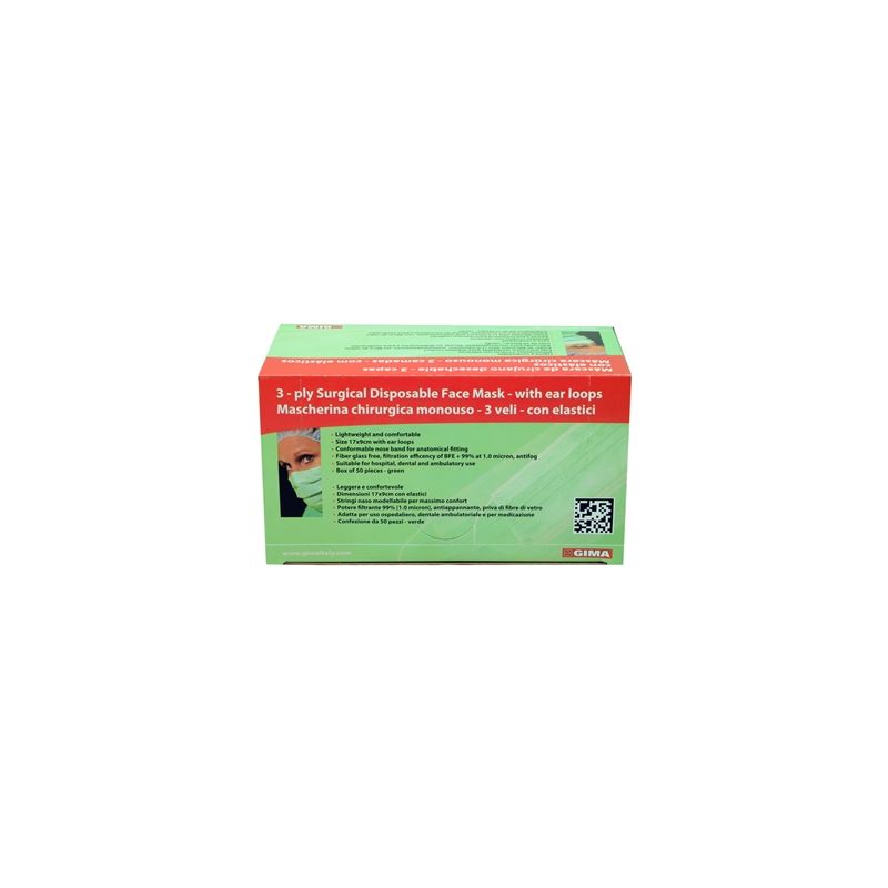 GIMA GISAFE QUIRGRGIC MASCARILLA 98% 3 CAPAS TIPO II met ELASTICS - VERDE CLARO (DS)