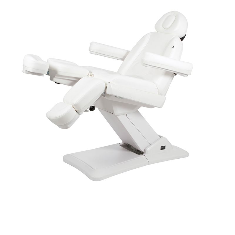 Hoogwaardige podologie stoel met zeer stabiele structuur uitgerust met 3 motoren die de lengte beheersen, de inclinatie van de achter en stoel.