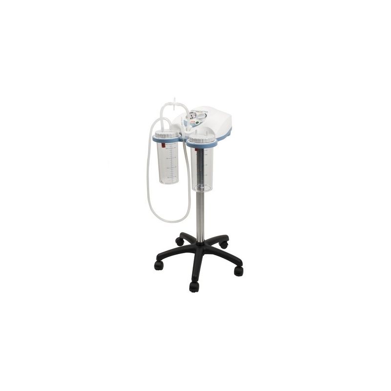 aspiração de fluidos corporais (moco, flem e sangue). Equipado com 5 rodas, três com dispositivo de travagem.