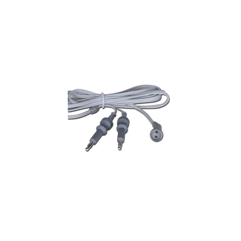 Cabo de silicone bipolar de alta qualidade e extremamente flexível. 3 metros de comprimento e esterilizável em autoclave a 137 °C até um máximo de 70 vezes.