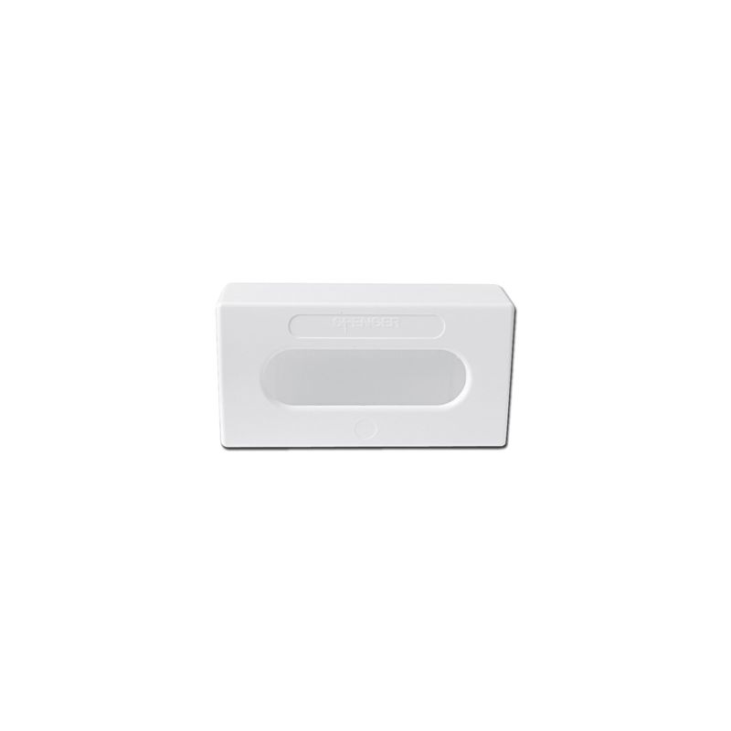 Feito de duas partes; a base, que é fixa, e a tampa, que pode ser facilmente removida uma vez que a caixa de luva é substituída.