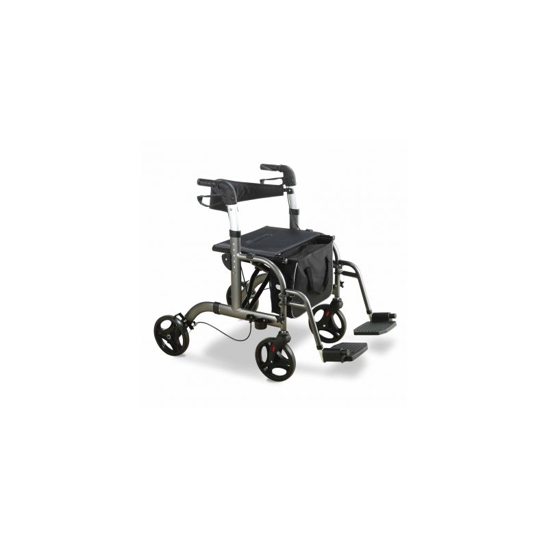 Caminhada rodas com estrutura dobrável de alumínio com quatro rodas, rotativa frontal e traseira fixa com freio de estacionamento, com apoio para os pés.