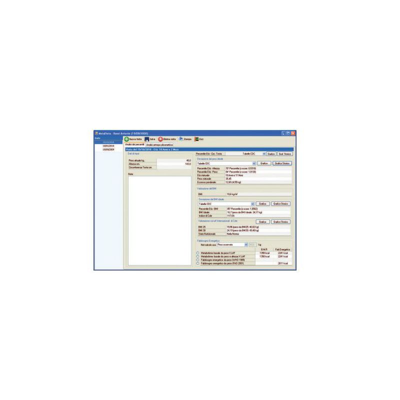 Permite realizar a história clínica detalhada, com o apoio de uma base de dados abrangente de fotos de alimentos e porções, constantemente atualizada e implementada com os valores das principais bases de dados oficiais italianas (INRAN / revisão IEO 2008 / ADI).