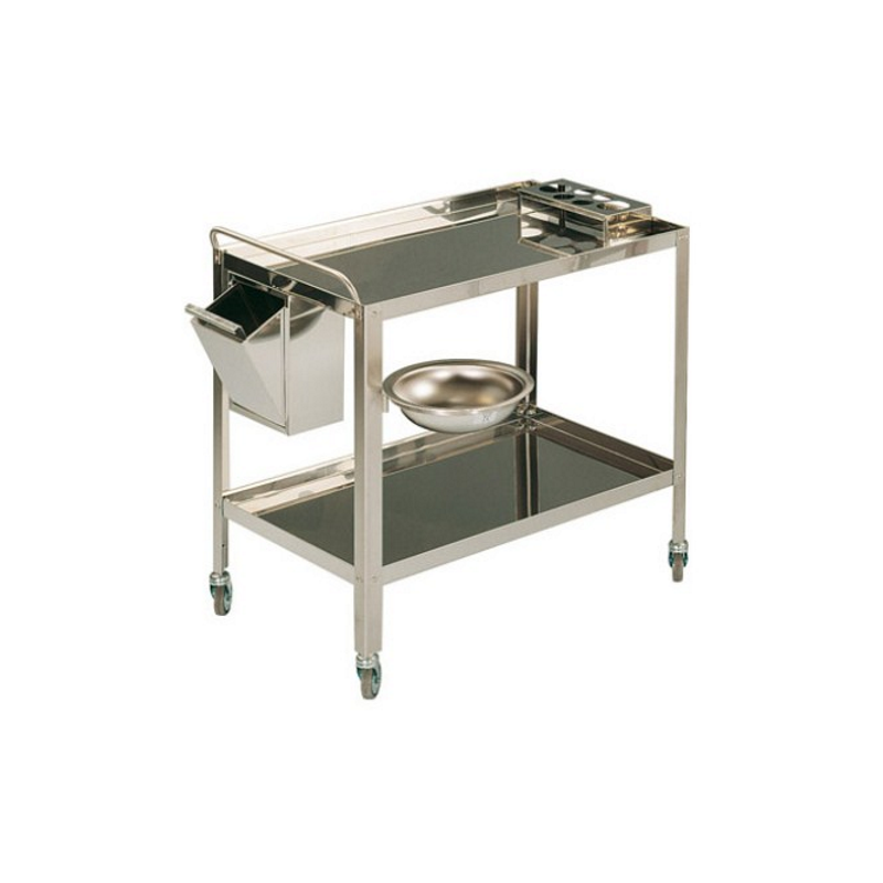Carrinho médico equipado para medicação completamente construído em aço inoxidável.