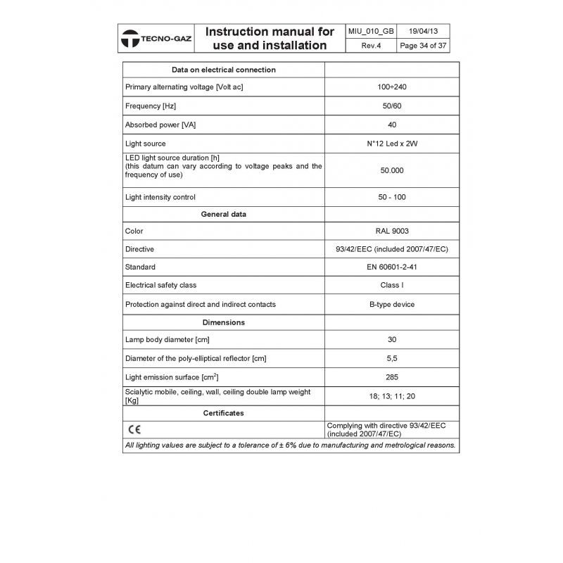 Belysningskroppen, ultraplanet för att inte störa operatören, är utrustad med en ultraresistent polykarbonatskärm som garanterar skydd mot eventuella oavsiktliga effekter.