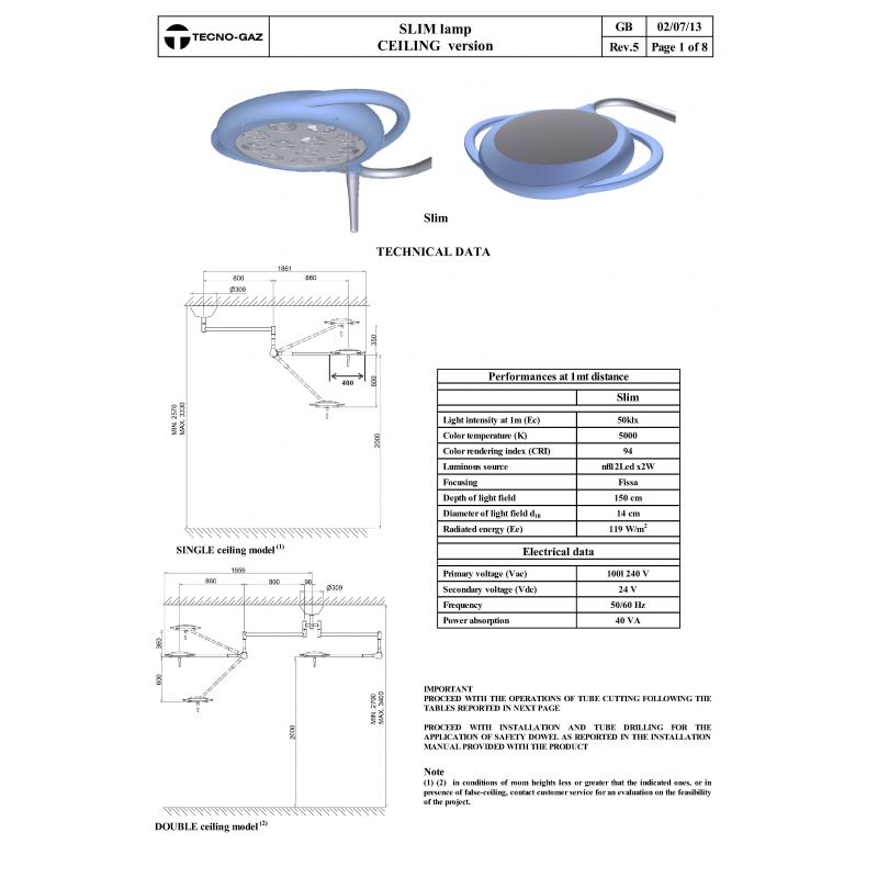 Tecno-Gaz har skapat SLIM en kirurgisk/scialistisk parabolisk lampa för öppenvårdsanvändning med stöd, tak och enhetslösningar.